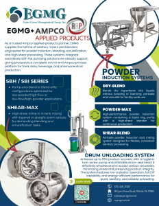 Ampco Applied Products![]() | Solutions for Mixing and Blending 📁JET-Shear Mixer 📁BINEM Drum Unloading System 📁Powder Mixing & Blending Systems 📁ↈ SHEAR-max Mixing and Blending ![]() |